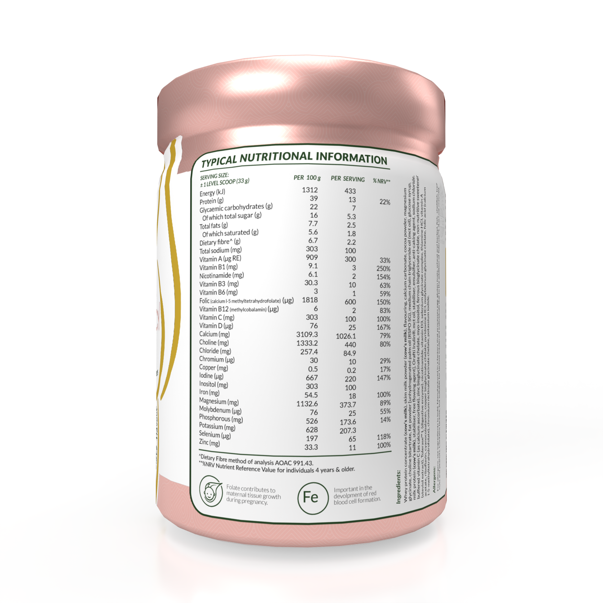 Each scoop is packed with carefully selected nutrients in bioavailable forms, making it easy to meet your daily needs without the overwhelm of multiple supplements. With a smooth chocolate flavour, it’s a convenient, enjoyable way to support your body during pregnancy and beyond.